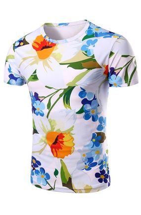 Round Neck Floral 3D Print Pattern Short Sleeve Men's T-Shirt