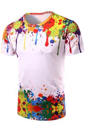 Round Neck 3D Colorful Splash-Ink Print Short Sleeve Men's T-Shirt
